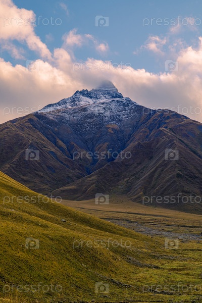 Высокогорья Северной Осетии. Горы Кавказа. Высокие горы в лучах заходящего солнца