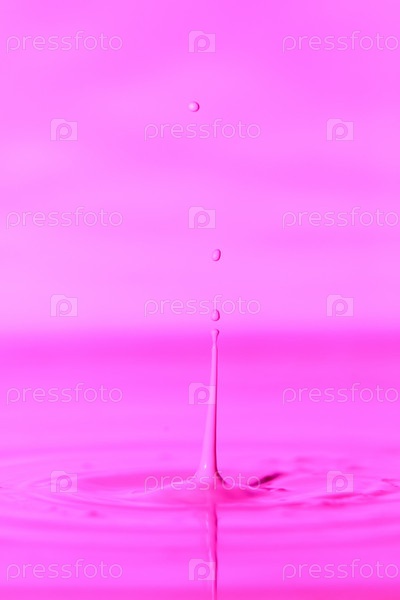 Капля попадает в густую жидкость с розовым фоном. Абстрактный красочный фон
