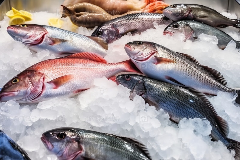 Сырая рыба на льду.Генеративный ИИ