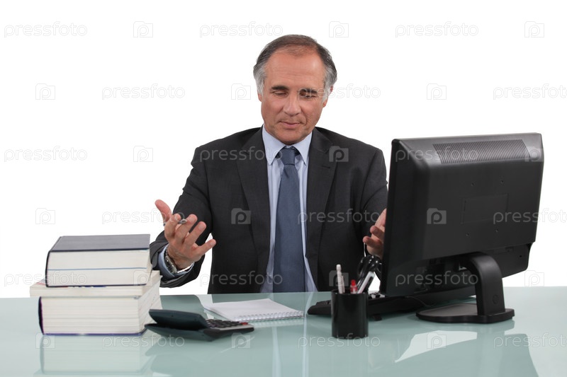Бизнесмен работает за столом