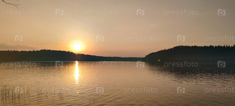 Закат над лесом и озером
