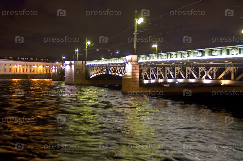 Санкт-Петербург, Россия - 16 мая 2006 г.: Васильевский остров и Дворцовый мост ночью