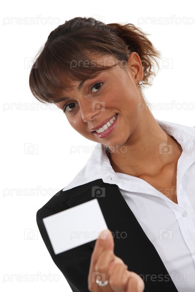 Женщина, держащая визитную карточку