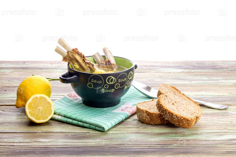 Бараний суп в миске крупным планом