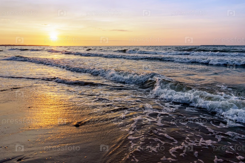 Закат над морем. Отражение солнечного света в морских волнах. Небо в закатных лучах