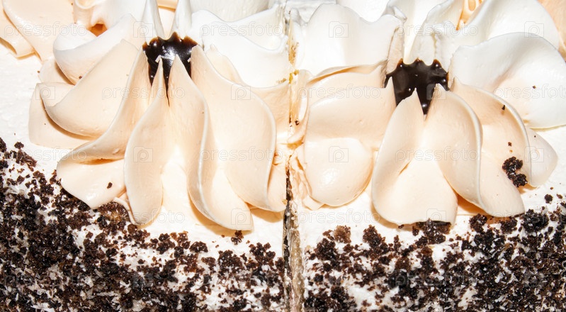 Торт с сливками и клубникой.Кусок клубничного торта со сливочным кремом.Торт со сметаной и ягодами.A piece of strawberry cake with buttercream