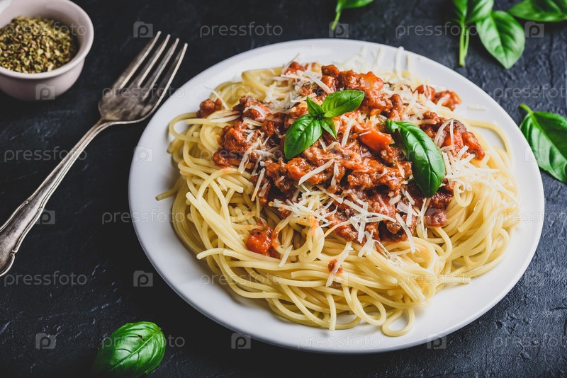 Спагетти с соусом болоньезе и сыром пармезан
