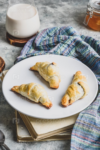 Шоколадные круассаны с молоком на завтрак