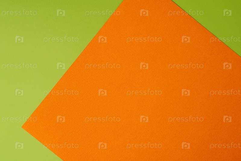 Оранжевый и зеленый цветной фон из перекрывающихся картонных листов геометрической формы. Абстрактная концепция дизайна. Поверхностные элементы. Измельченная текстура, ремесленный фон