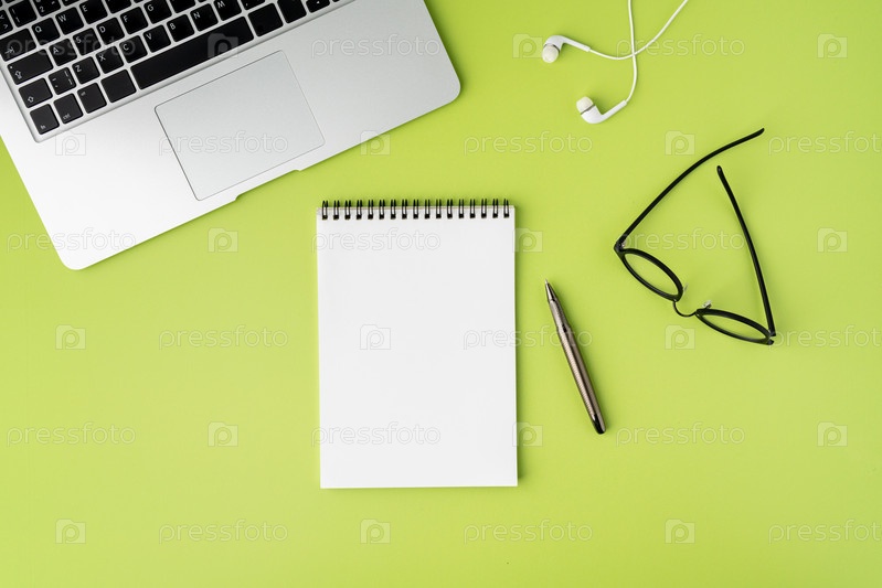 Пустое пустое место на белой спиральной тетради для текста. Современная концепция рабочего пространства, вид сверху