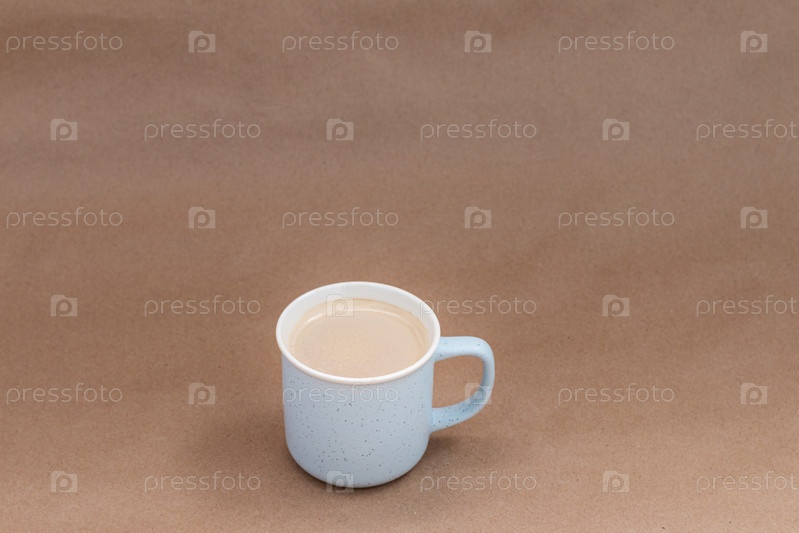 Чашка кофе с молоком на бежевом фоне, плоский натюрморт с местом для текста
