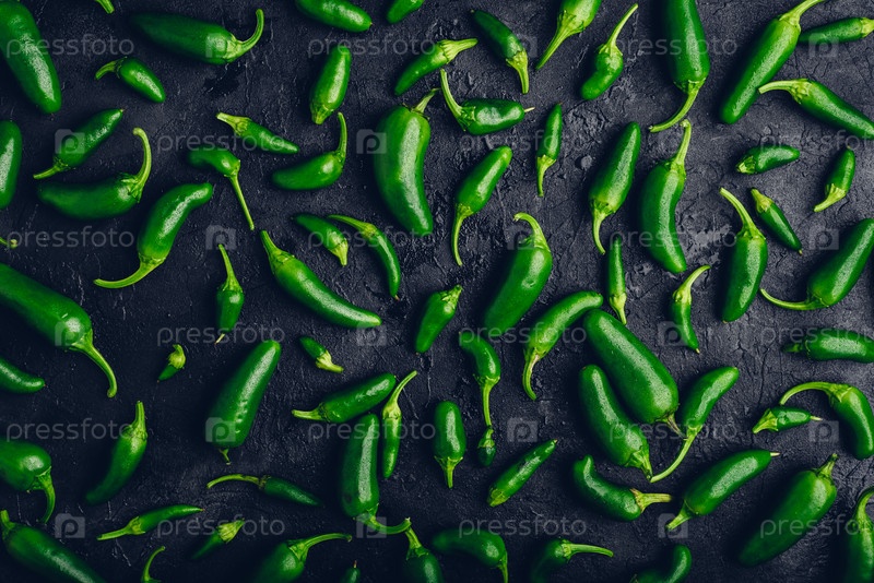 Состав ярко-зеленого перца халапеньо на темно-черном бетонном фоне