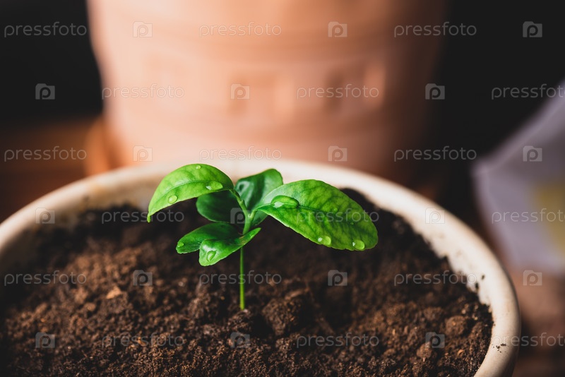 Молодой мандарин в керамическом горшке