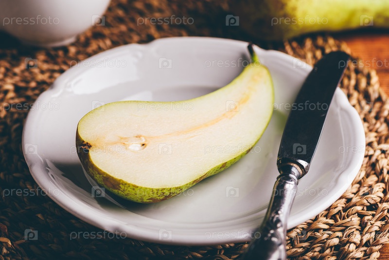 Половина груши конференции на тарелке