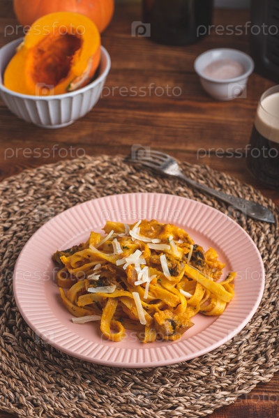 Паста Феттучини с тыквенным соусом и грибами