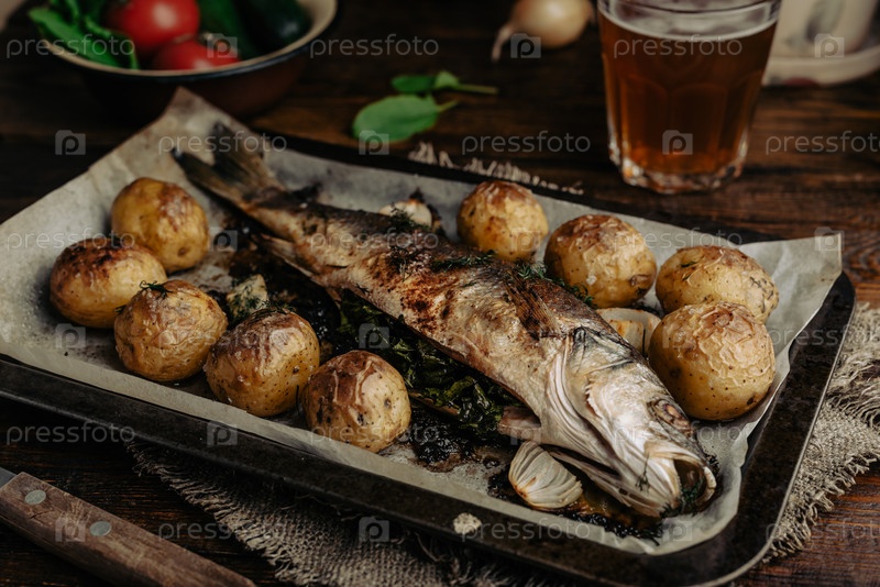 Целый сибас, запеченный с молодым картофелем