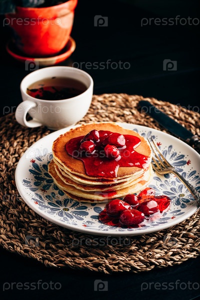 Стопка блинов с вареньем из кизила