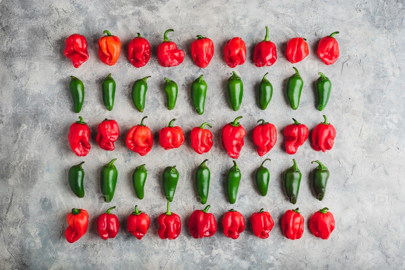 Ряды перца халапеньо и хабанеро
