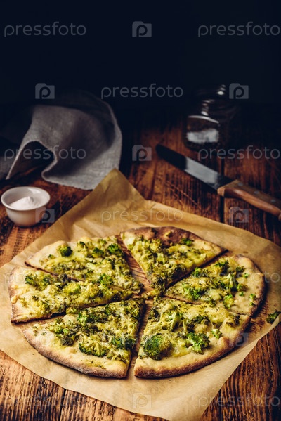 Нарезанная итальянская пицца с брокколи и сыром