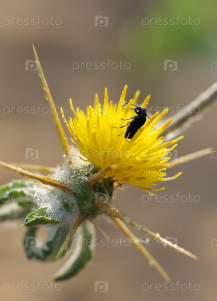 Черный жук на желтом цветке