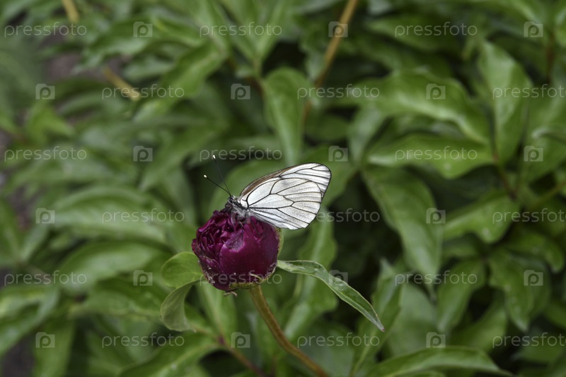 Белокочанная бабочка Pierisbrassicae на цвете. Бабочка паразит. Красивое насекомое