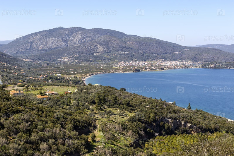 Вид на курортный город Эпидавр и море (Пелопоннес, Греция)
