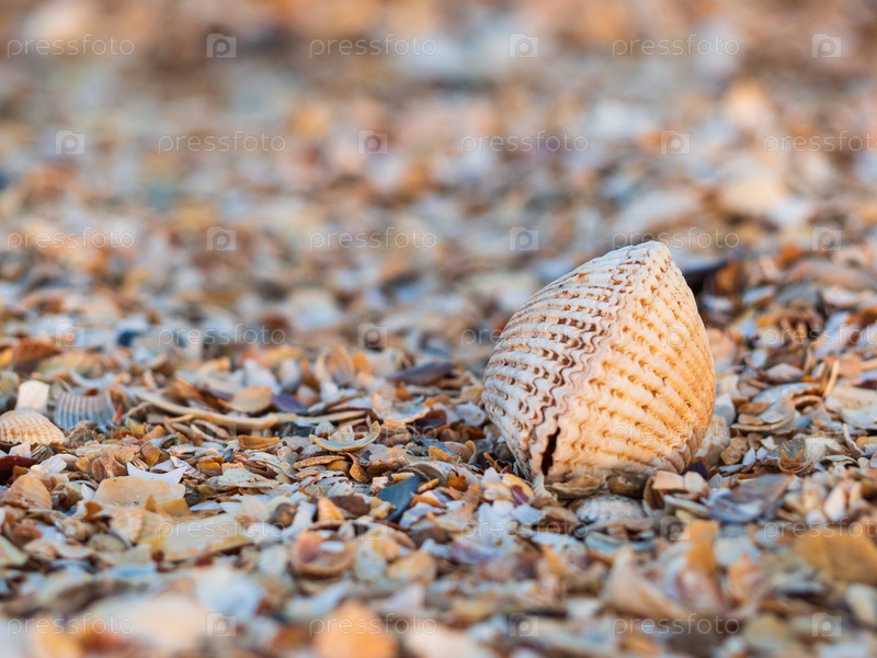 Крупный план ракушки на пляже ракушки. Одна двухстворчатая ракушка на пляже у моря