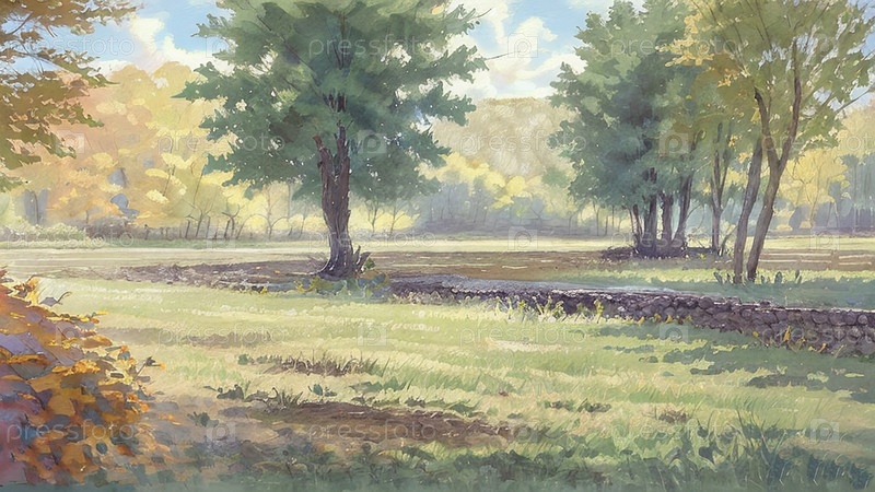 Акварель летний пейзаж