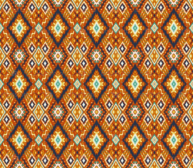 Икат геометрический фольклорный орнамент с бриллиантами. Племенная этническая векторная текстура. Бесшовный полосатый узор в стиле ацтеков. Народная вышивка. Индийский, скандинавский, цыганский, мексиканский, африканский ковер