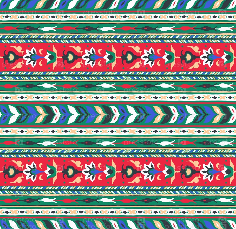 Геометрический фольклорный орнамент икат. Племенная этническая векторная текстура. Бесшовный полосатый узор в стиле ацтеков. Рисунок племенной вышивки. Индийский, скандинавский, цыганский, мексиканский, народный узор