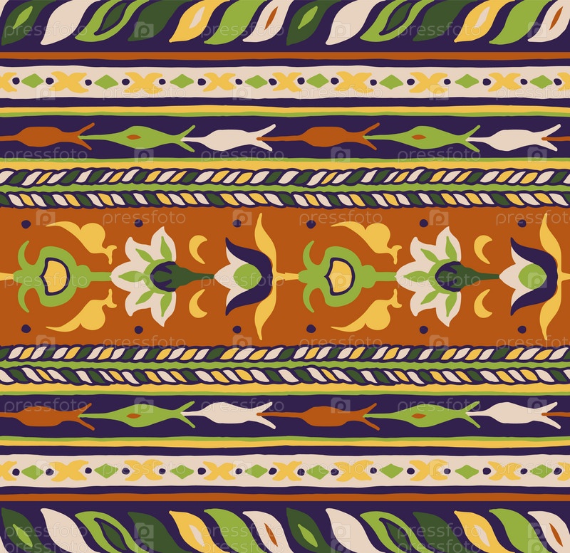 Геометрический фольклорный орнамент икат. Племенная этническая векторная текстура. Бесшовный полосатый узор в стиле ацтеков. Рисунок племенной вышивки. Индийский, скандинавский, цыганский, мексиканский, народный узор
