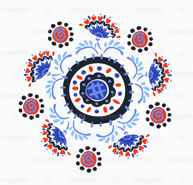 Набор этнических элементов. Бордюр представляет собой полосу с цветами, листьями, ветками, вензелями. Народная вышивка. Славянский, украинский, русский мотив. Хохлома, матрешка, дымковская игрушка. Мексиканский, индийский, цыганский ковер. Вязаное кружево
