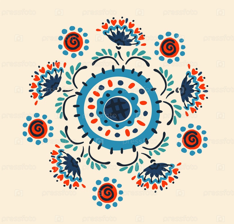 Набор этнических элементов. Бордюр представляет собой полосу с цветами, листьями, ветками, вензелями. Народная вышивка. Славянский, украинский, русский мотив. Хохлома, матрешка, дымковская игрушка. Мексиканский, индийский, цыганский ковер. Вязаное кружево