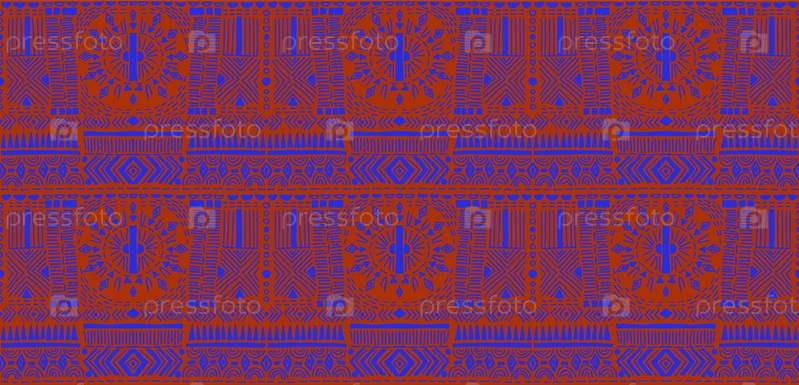Племенной векторный орнамент. Бесшовный африканский узор. Этнический ковер с шевронами. Ацтекский стиль. Геометрическая мозаика на плитке, майолика. Древний интерьер. Современный ковер. Геопринт на ткани. Кенте Ткань