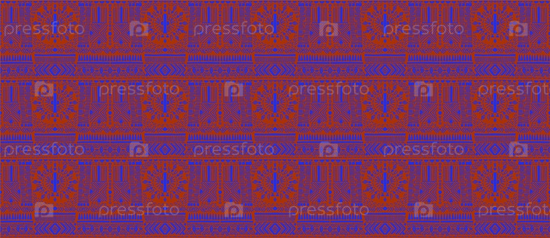 Племенной векторный орнамент. Бесшовный африканский узор. Этнический ковер с шевронами. Ацтекский стиль. Геометрическая мозаика на плитке, майолика. Древний интерьер. Современный ковер. Геопринт на ткани. Кенте Ткань
