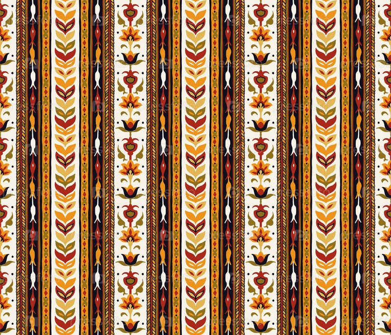 Геометрический дамасский орнамент. Икат границы. Этническая вышивка с листьями и монограммами. Племенная векторная текстура. Бесшовный народный узор в ацтекском стиле. Индийский, скандинавский, цыганский, мексиканский, африканский ковер