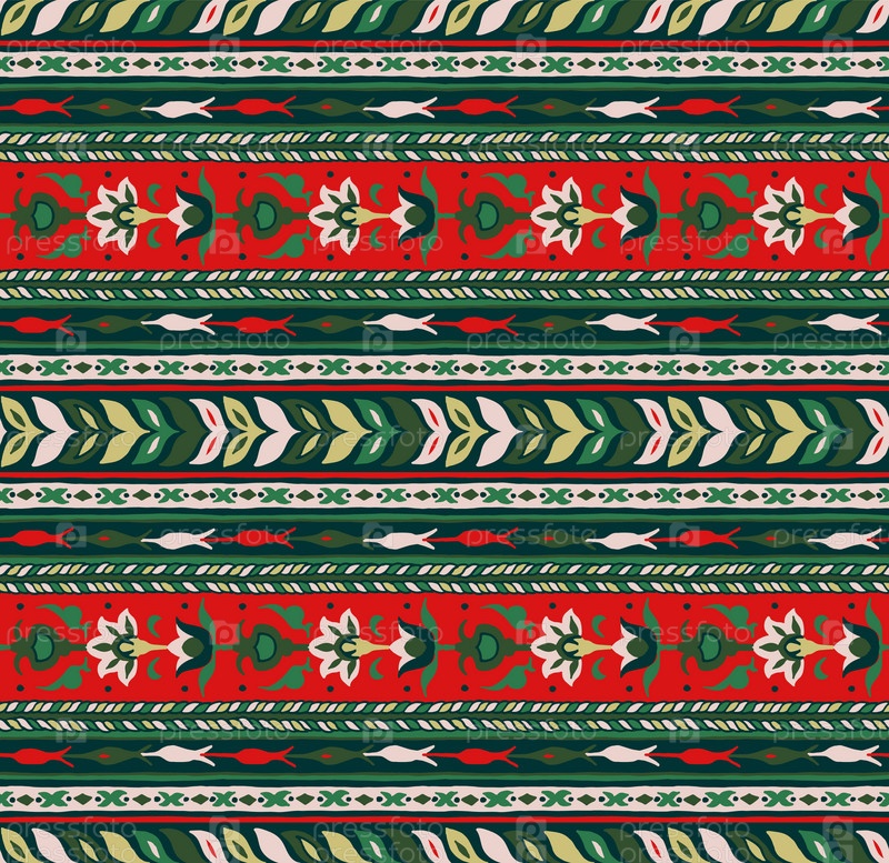 Геометрический фольклорный орнамент икат. Племенная этническая векторная текстура. Бесшовный полосатый узор в стиле ацтеков. Рисунок племенной вышивки. Индийский, скандинавский, цыганский, мексиканский, народный узор