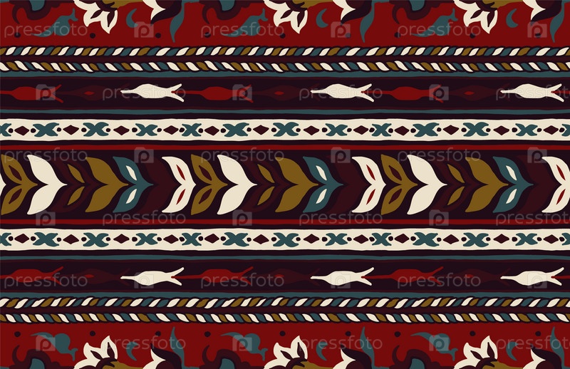 Геометрический фольклорный орнамент икат. Племенная этническая векторная текстура. Бесшовный полосатый узор в стиле ацтеков. Рисунок племенной вышивки. Индийский, скандинавский, цыганский, мексиканский, народный узор