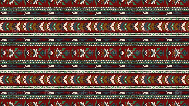 Геометрический фольклорный орнамент икат. Племенная этническая векторная текстура. Бесшовный полосатый узор в стиле ацтеков. Рисунок племенной вышивки. Индийский, скандинавский, цыганский, мексиканский, народный узор