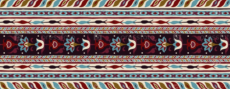 Геометрический фольклорный орнамент икат. Племенная этническая векторная текстура. Бесшовный полосатый узор в стиле ацтеков. Рисунок племенной вышивки. Индийский, скандинавский, цыганский, мексиканский, народный узор
