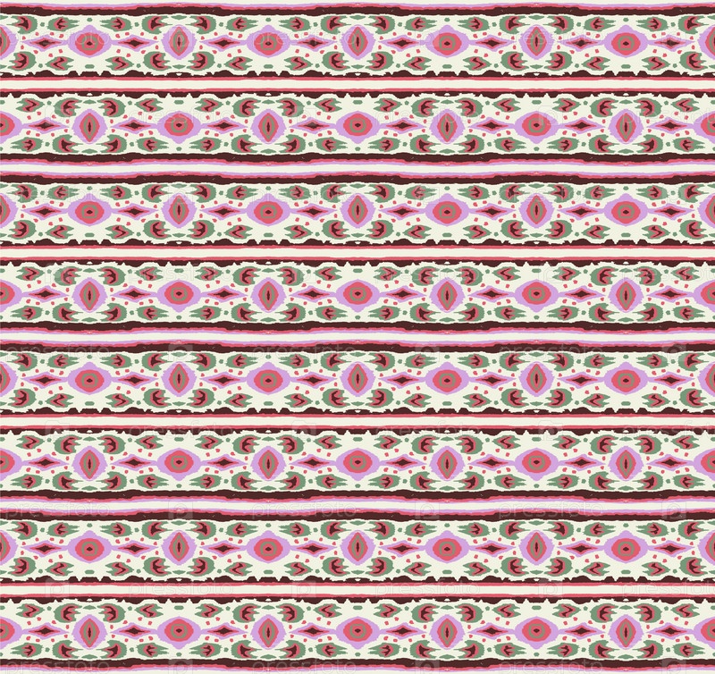 Икат геометрический фольклорный орнамент с бриллиантами. Племенная этническая векторная текстура. Бесшовный полосатый узор в стиле ацтеков. Народная вышивка. Индийский, скандинавский, цыганский, мексиканский, африканский ковер