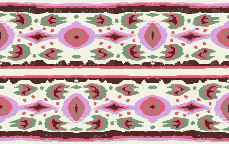 Икат геометрический фольклорный орнамент с бриллиантами. Племенная этническая векторная текстура. Бесшовный полосатый узор в стиле ацтеков. Народная вышивка. Индийский, скандинавский, цыганский, мексиканский, африканский ковер
