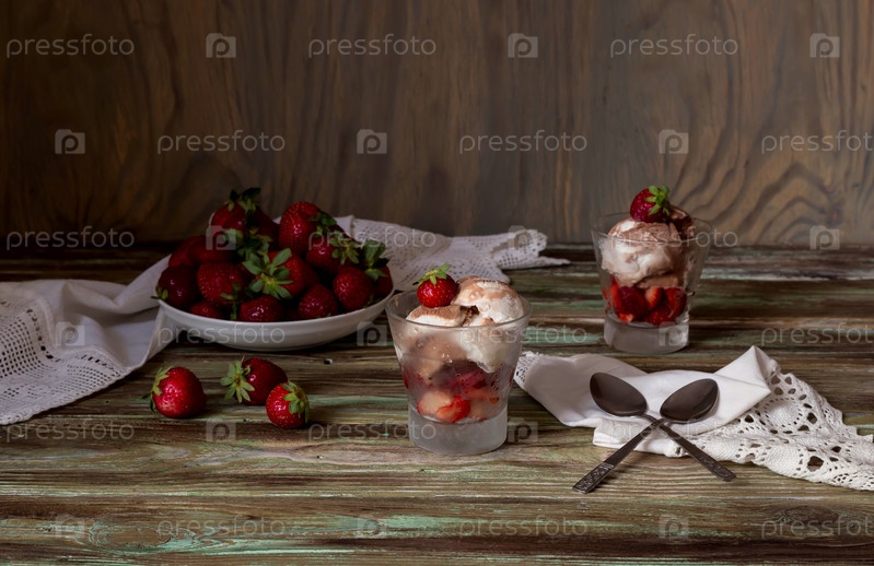 Мороженое в стаканах с клубникой