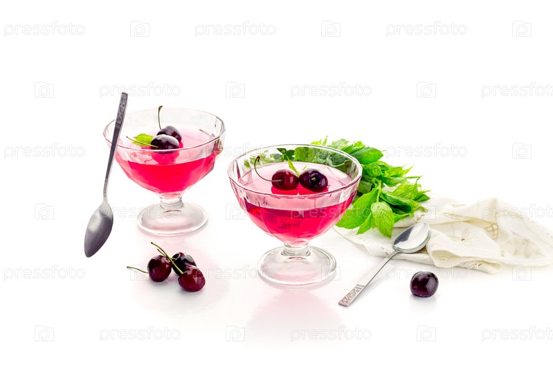 Желе из черешни на белом фоне