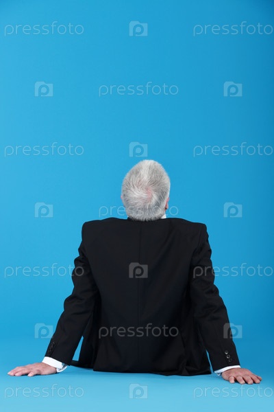 Пожилой мужчина сидит спиной