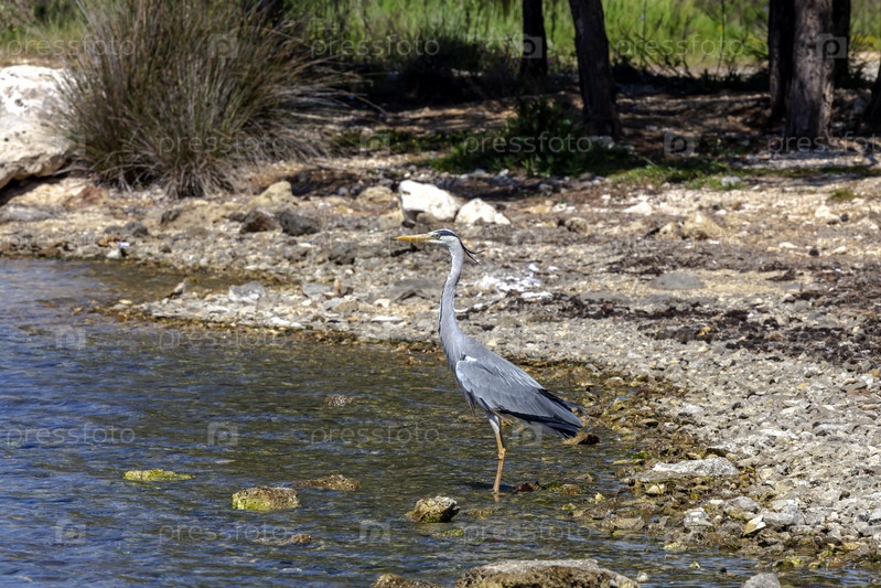 Большая серая смола (Ardea cinerea) в крупном плане (Греция, остров Кефалония)