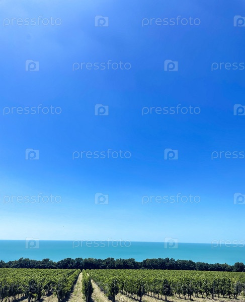 Красивый зеленый летний виноградник красивый пейзаж с копией пространства