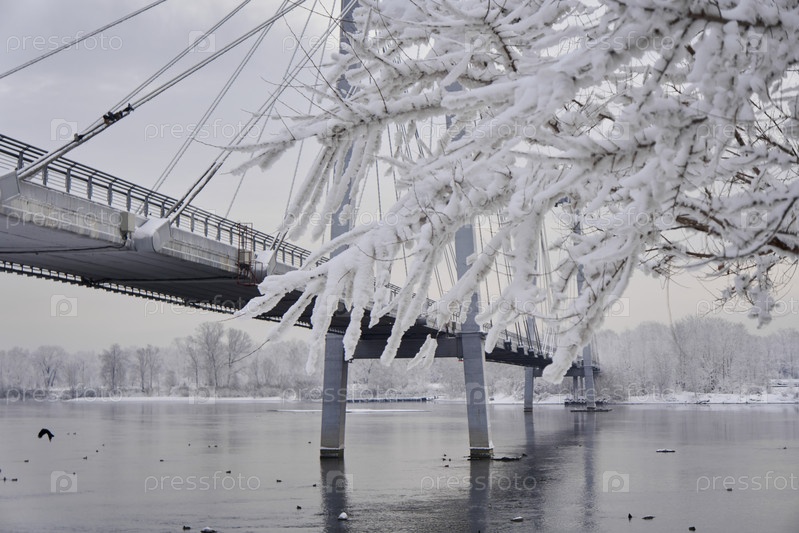 Морозное туманное зимнее утро над Енисеем в центре Красноярска