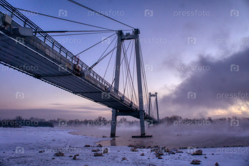 Морозное туманное зимнее утро над Енисеем в центре Красноярска
