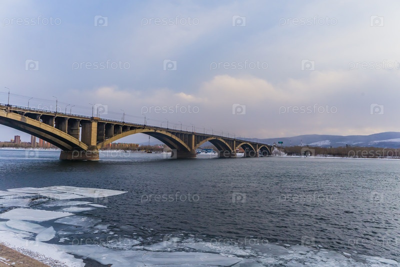 Морозное туманное зимнее утро над Енисеем в центре Красноярска